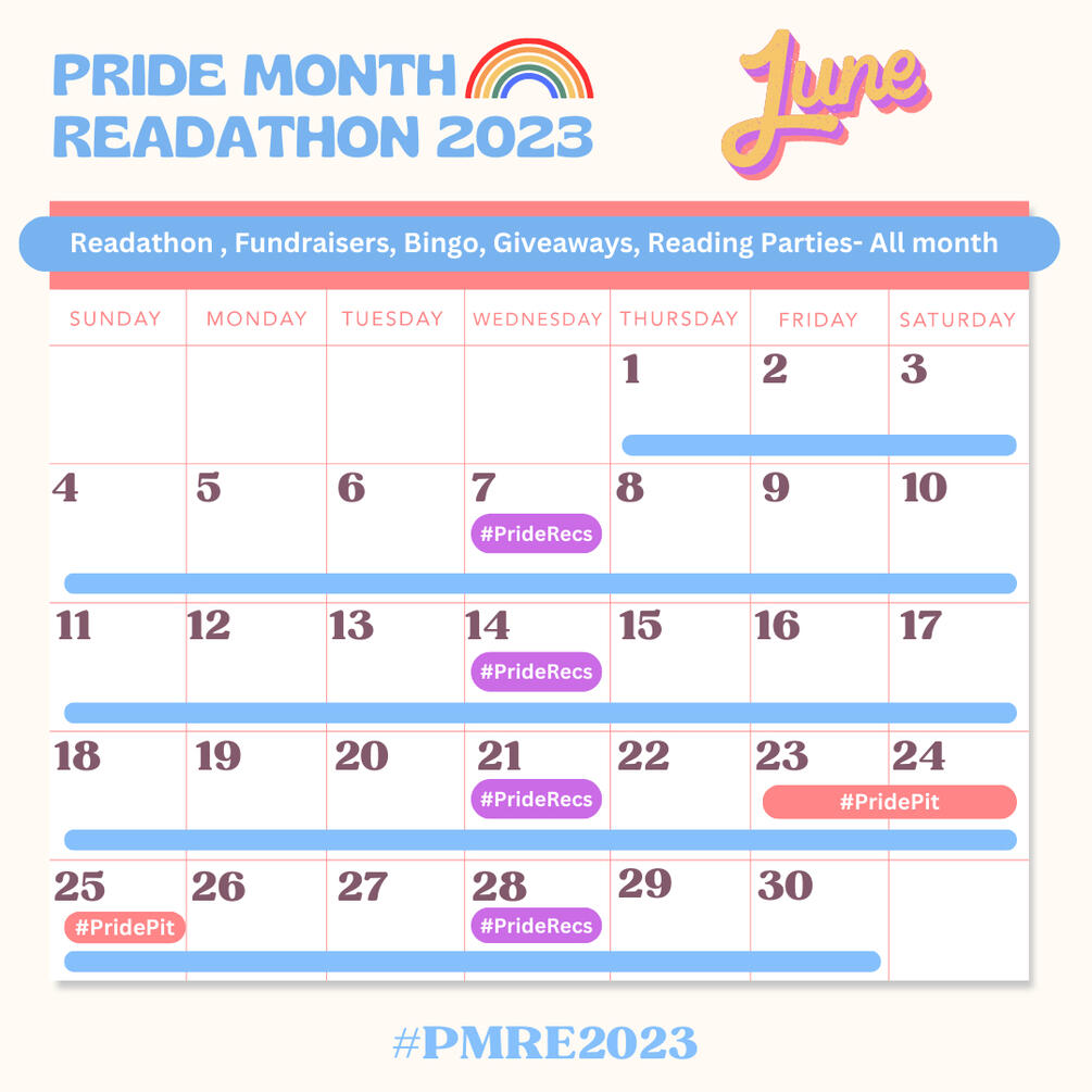 During Pride Month, participants can expect to see a multitude of mini-events all throughout June, these include our month-long Readathon, Fundraisers, Pride Month Book Bingos, Giveaways, Reading Parties & more!Readers and creators will also have year round access to our Pride Book/Comic Database: a database of books and comics which feature LGBTQ+ Rep across their main cast! Creators will be free to submit their works to this database any time, we’re hoping to expand it as much as possible, so that readers will always have a place to find new and upcoming reads!Paired with this database will be our Reviewer-To-Book/Comic Matchmaking that we also hope to run all year round!#PMRE2023 meaning Pride Month Reading Event will be our general hashtag for the June events and other activities associated with PMRE year round!#PrideRecs is a weekly Wednesday event, where readers are invited to share their favorite books and comics with LGBTQIA+ characters on social media every Wednesday in June! (It’s also going to be a very cheeky prank, as creators unaware of our event will mysteriously receive new sales and support on Wednesdays without knowing why, please feel free to join us in surprising our favorite creators with bouts of mysterious support! ;)#PridePit is a positivity pitch event for creators, centred around sharing comics and books with LGBTQIA+ characters, it will be hosted from June 23rd - June 25th on social media!